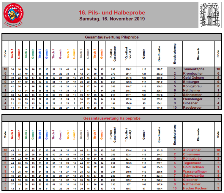 16. Pils - und Halbeprobe am 16.11.2019!