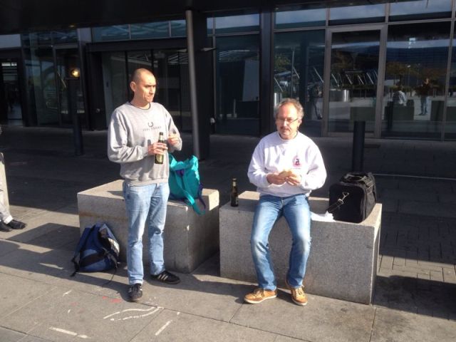Um 3 Uhr in der Früh holte uns der Wecker aus dem Schlaf. Trotzdem gings bestens gelaunt per Flughafentransfer nach Stuttgart. Die ersten bekannten Nasen saßen schon im Flieger und los gings Richtung Insel. In Kopenhagen noch kurz den Flieger gewechselt und schon war man in Manchester.Morgens konnte schon das Hotel bezogen werden und so konnte man sich zügig den kullinarischen Genüssen der Engländer hingeben. In unserer Stammkneipe "Waxy o`connors" traf man auf die Kameraden vom Fanclub GuFi.Dort wurden dann reichlich Vitamine konsumiert und sogar feste Nahrung war ausnahmsweise dabei! Pünktlich wurde das Stadion geentert und die Stimmung war gleich prächtig. Einfach genial was unsere Bayern auf dem Rasen ablieferten aber auch auf den rot - weißen Rängen war einiges geboten. Spätestens nach dem 0-3 in der 59. Minute war sowieso alles in deutscher Hand. Hut ab - eine phantastische Leistung! Selbst die eingefleischten City Fans zollten nach dem Schlusspfiff unserem Team standing ovationes! Noch ein paar lecker Bier vertilgt dann gings in die Heia, da am nächsten Morgen schon wieder der Flieger in den Startlöchern stand! Ein Besuch der Insel ist einfach immer eine Reise Wert - Guiness is good for you!!!