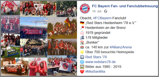 Netter kleiner Bericht über die Red Stars 78 auf der Facebookseite der FC Bayern Fan - und Fanclubbetreuung😀💪