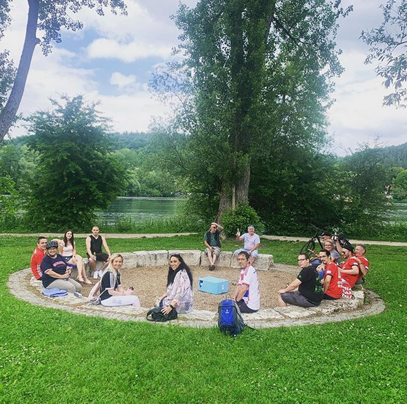 Bereits im Juni veranstaltete man einen Weißwurstfrühschoppen im "Melange"🥨 mit anschließender Fahrradtour zum Itzelberger See🚲 Nach einer Panne des "Versorgungsfahrzeuges" ging es flott weiter zum Zielpunkt, wo eine verdiente Ruhepause eingelegt wurde. Nächster und letzter Haltepunk war dann unser Bunker mit dem Spiel FC Bayern - M`Gladbach⚽ Wie immer endete es in den frühen Morgenstunden🍺😃