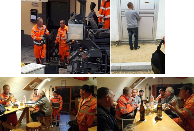 Es geht voran... mittlerweile ist der Grobasphalt auf der Straße und dem Gehweg bis vor den Bunker eingebaut. Die Kollegen rund um unsere treuen Gäste Luis, Joao und Manu leisten sehr gute Arbeit! Natürlich werden sie auch in ihrer Mittagspause bestens im Bunker bewirtet :-) Ein paar Wochen müssen wir noch überstehen dann ist die Ziegelstraße wieder durchgehend befahrbar und es kann wieder geparkt werden!