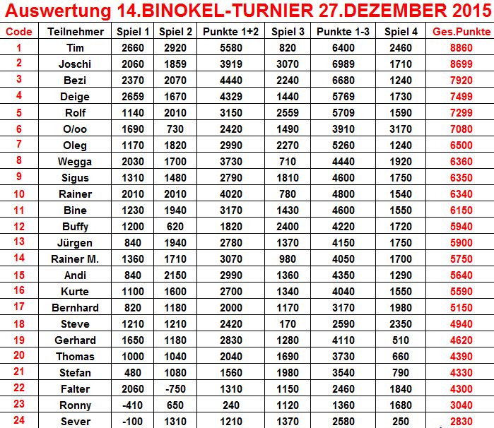 Es gab eine Rekordbeteiligung mit 24 Teilnehmern zu unserem 14. Binokelturnier.