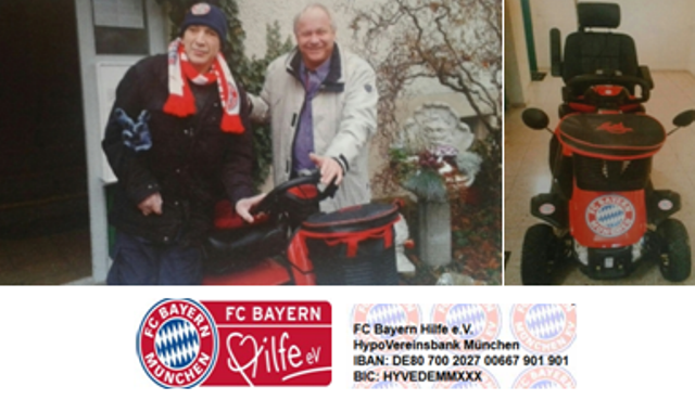 Dank des tollen Engagements von Thomas Knoll, durch die Bewerbung beim FC Bayern Hilfe e.V. gab´s eine Riesenüberraschung für unser Mitglied Hansi Rupp! Was soll man dazu sagen? Stand doch glatt ein niegelnagelneuer Elektro - Scooter im Bayernlook vor seiner Tür, um ihm wieder mehr Mobilität zu verschaffen! Tausend Dank dem FC Bayern Hilfe e.V. und natürlich "Knolli" der das Ganze erst im wahrsten Sinne des Wortes ins "rollen" gebracht hat! Spenden auf u.a. Konto sind beim FC Bayern natürlich jederzeit willkommen